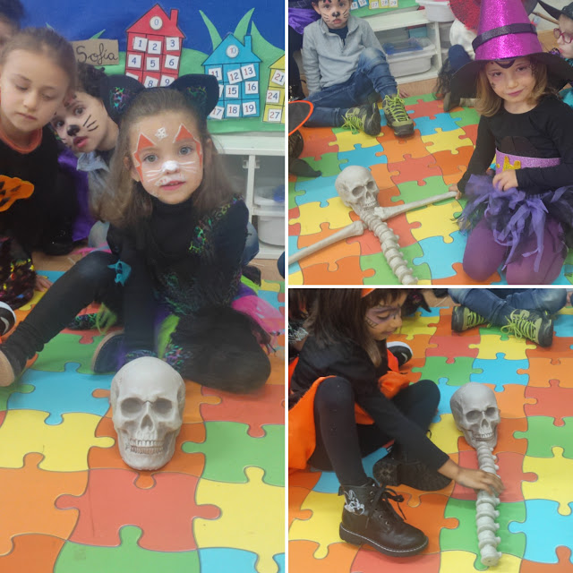Chegou o día e viñemos terroríficamente disfrazados e aproveitamos para montar un esquelete e analizar as súas partes, cha,ounos moito a atención saber qué é o que temos dentro do noso corpo, así que non tardaremos en investigar sobre este tema...